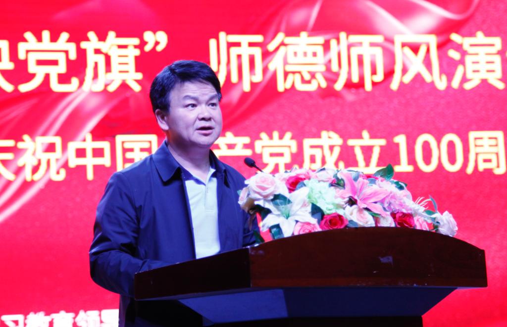 何振对省教育厅《关于举办“师魂映党旗”湖南省师德师风演讲比赛的通知》及比赛规则作了详细解读。汤放华宣布学校庆祝中国共产党成立100周年——“师魂映党旗”师德师风教育活动正式启动。