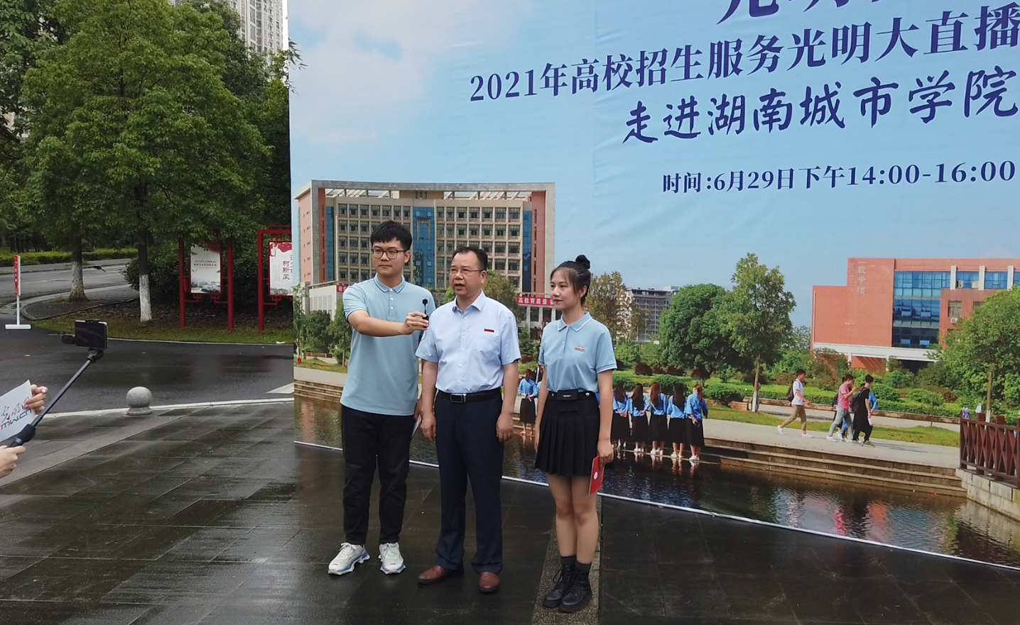 校长汤放华在直播中接受主播采访。