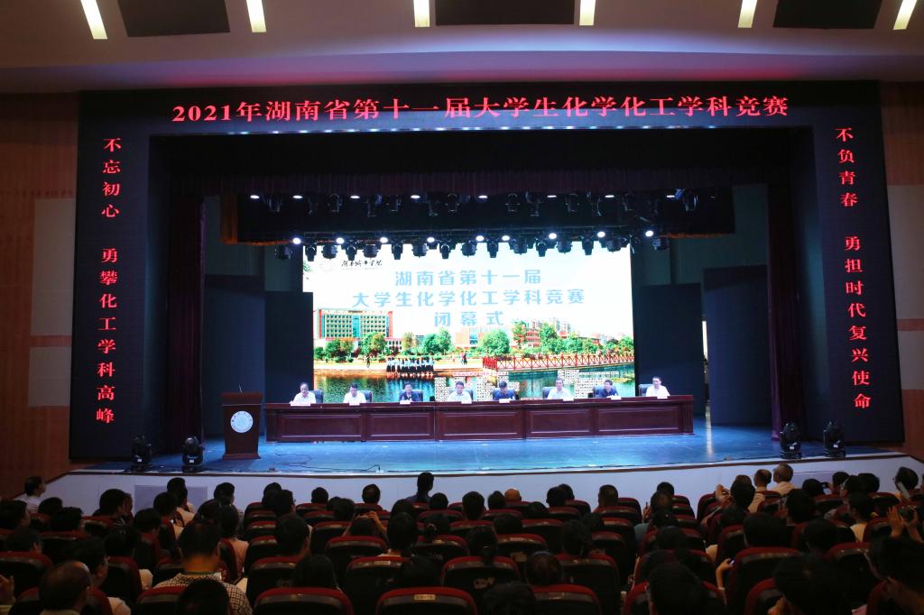 7月16日下午,比赛闭幕式在学校音乐厅举行。省教育厅高教处副处长王荣、我校校长汤放华、湖南工程学院校长易兵、我校副校长雷存喜、省化学化工学会理事长刘卫东、省大学生化学化工学科竞赛委员会主任郭栋才等人出席。