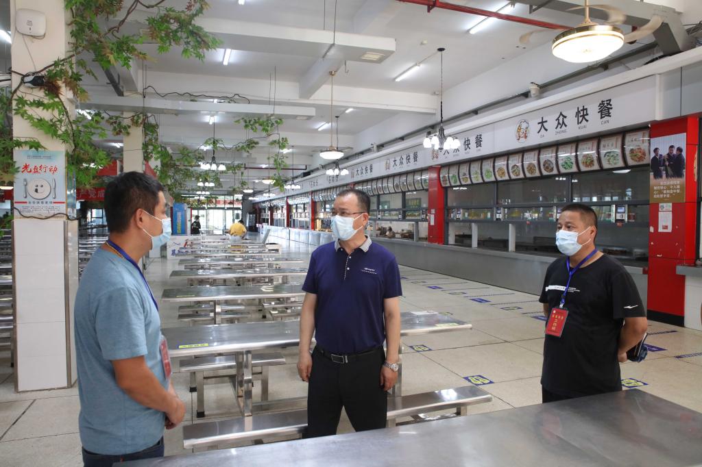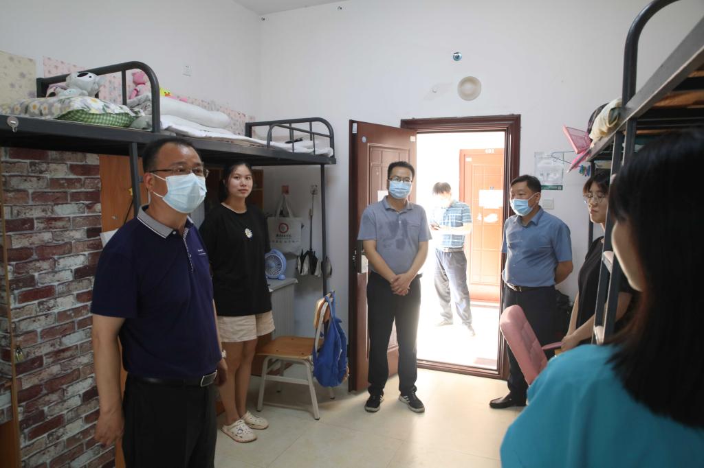 本网讯 2021年8月6日下午,烈日炎炎,党委书记李建奇,副校长夏宏宇、谭献良、袁志成,党委委员、组织部部长吕贤军一行前往校园南门、招生就业处、疫情防控办、学生宿舍、食堂、高压配电室和总值班室等场所,看望慰问了奋战在疫情防控一线的工作人员,对他们的坚守和付出表示由衷感谢。