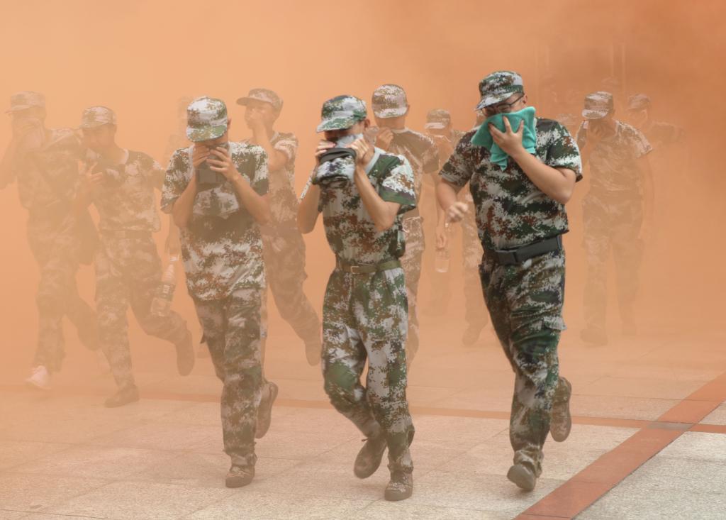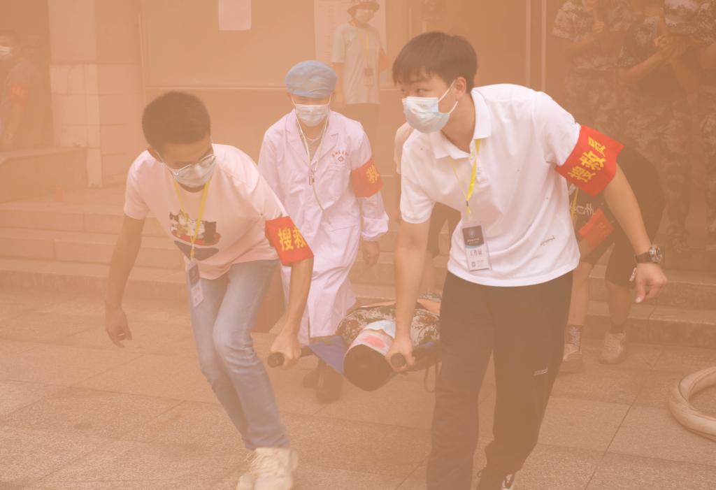 本网讯(记者 文彦波 摄影 博夕)“铃!铃!铃!”9月28日中午12时许,半岛web版登录入口_半岛online(中国)第二教学楼内突然传来一阵急促刺耳的警报声,滚滚浓烟从楼内各处漫出,一名名身着迷彩装的青年学子用湿毛巾捂住口、鼻,弯着腰迅速从楼内撤出,与此同时,校园里响起消防车的警笛声……