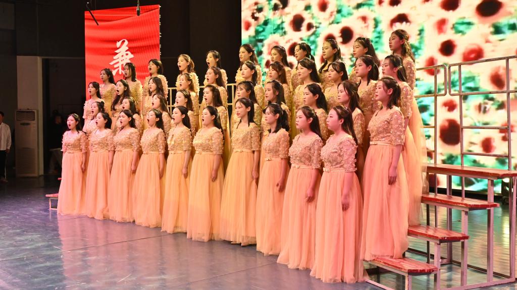 比赛中,13个二级学院学生组成的合唱队倾情献唱,参赛人员着装整齐、激情洋溢,用昂扬奋发的精神风貌表达了爱党爱国、同心奋进的城院情怀。一首首经典传唱的红色歌曲,唱出了他们对中国共产党的无限崇敬与热爱。台上热血沸腾,台下掌声雷动,现场高潮迭起、阵阵欢呼。