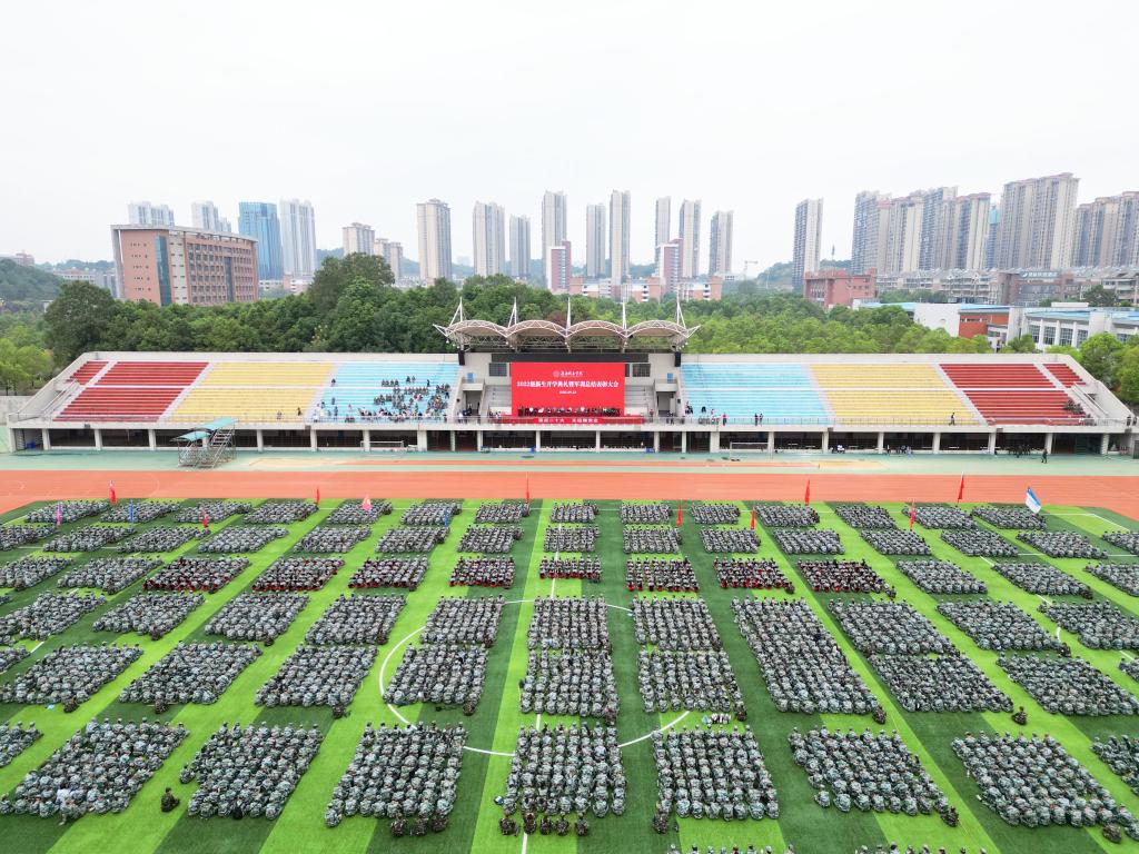 本网讯(文/图文彦波 张蓥 彭钦来 视频/张飞雪 李新会)四季长天同谱瑞,三秋桂子又飘香。9月23日上午,半岛web版登录入口_半岛online(中国)东田径场内红旗飘扬,口号嘹亮,欢声雷动,2022级本科新生开学典礼暨军训总结表彰大会正隆重举行。党委书记李建奇、校长汤放华等全体校领导出席,机关各部门主要负责人,各二级学院院长、书记、分管学生工作的副书记,2022级新生辅导员、班主任、教师代表以及2022级5913名本科新生参加。大会由李建奇主持。