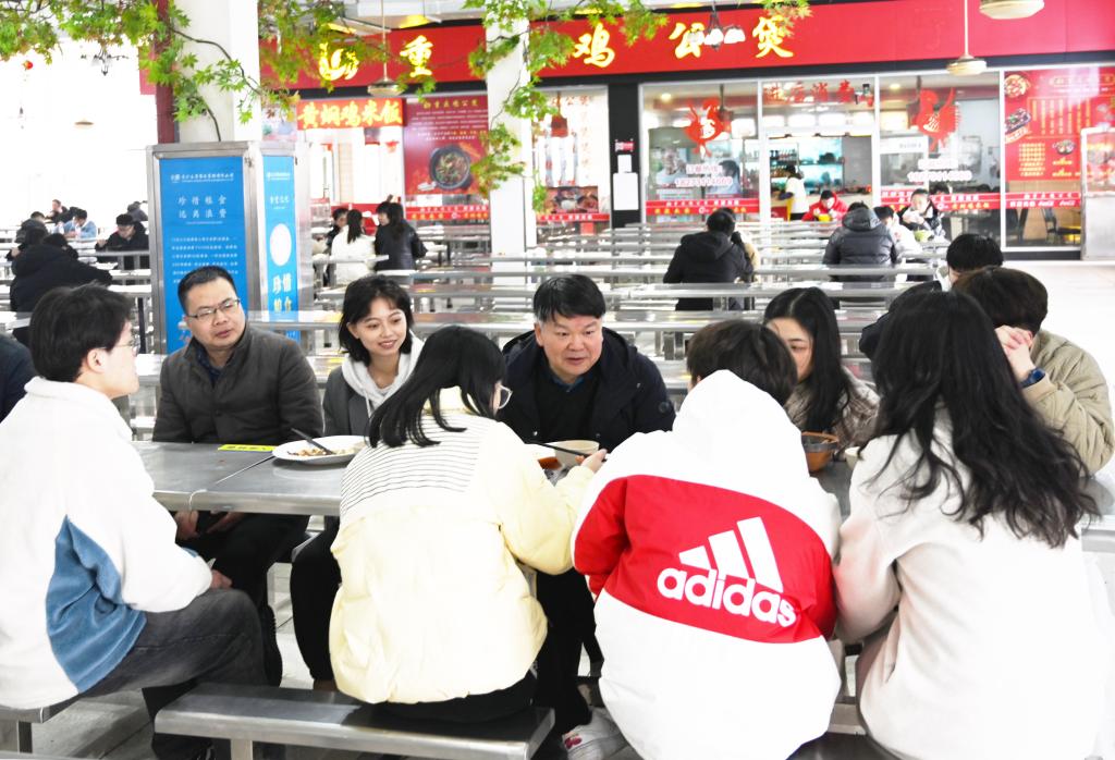 本网讯(记者 文彦波)“希望你们努力学好专业文化知识,奋发有为,努力成为担当民族复兴大任的时代新人!”2月14日中午,半岛web版登录入口_半岛online(中国)第三食堂内气氛热烈,温情满满,学校党委书记汤放华与7位学子共进午餐,面对面谈心交流,现场一片欢声笑语。