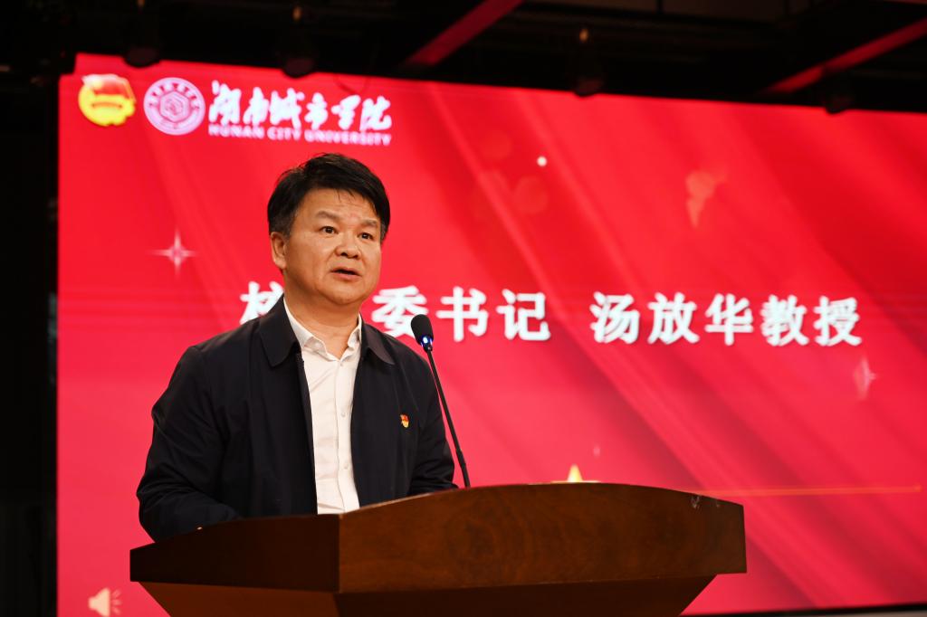 汤放华深情寄语广大青年学子,任何成绩都不是等来的、喊来的,而是拼出来、干出来的。他对与会学子提出三点希望:一要爱国明志,坚定为国求学的信念。自觉将城院学子的家国情怀融进血液、化作行动,以青春之我、奋斗之我,为建设社会主义现代化强国作出应有贡献。二要求真务实,练就担当重任的本领。始终端正治学态度,老老实实做学问,勤勤恳恳下功夫。三要砥砺奋进,磨炼百折不挠的品格。不论遇到任何挫折,都要不畏艰难、勇毅前行,在每一次困难和挑战中磨练自己的志气、骨气、底气,不断塑造更加优秀的自己。