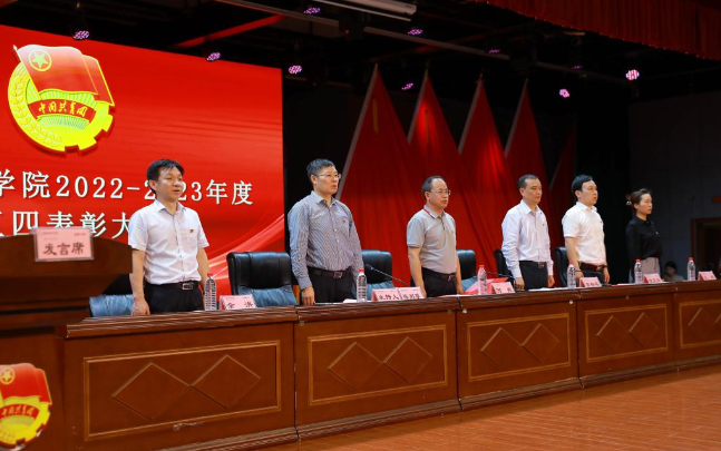 在激昂的国歌声中,表彰大会拉开序幕。副校长雷存喜宣读了《关于表彰半岛web版登录入口_半岛online(中国)第二届“活力团支部”和“城院之星”的决定》《关于表彰半岛web版登录入口_半岛online(中国)2022年度共青团工作先进集体和优秀个人的决定》。据悉,此次学校共评出“五四红旗团总支”4个,“优秀团支部”86个,“活力团支部”14个,“城院之星”18人,“优秀教师团干部”4人,“优秀共青团干部”273人,“优秀共青团员”376人。