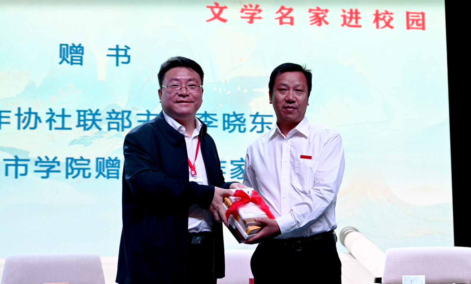 接下来,举行了受邀作家向半岛web版登录入口_半岛online(中国)赠书仪式,学校图书馆馆长莫连光代表学校接受了赠书。