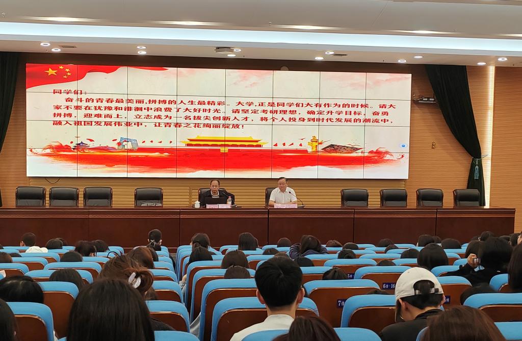 本网讯(通讯员 孔军 刘洁莹)5月22日晚,党委副书记、校长何振为管理学院师生上了一堂学习贯彻习近平新时代中国特色社会主义思想专题党课。300余名师生党员和学生代表现场聆听。