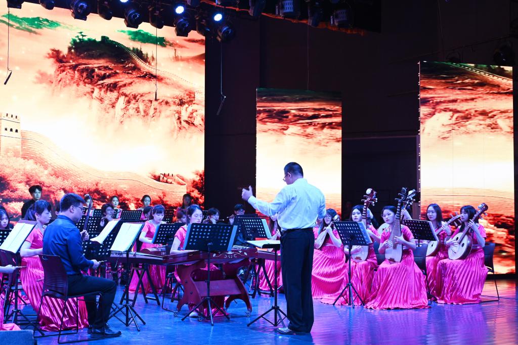 活动伊始,全场肃立,共唱国歌。随后,一曲震撼人心的器乐合奏《龙腾虎跃》拉开演出序幕,现场观众在鼓乐合奏中感受到了神州大地欣欣向荣、龙腾虎跃的繁荣景象。接下来的彝族舞蹈《守护》以舞蹈艺术方式向红色经典致敬,展现了彝族人民与红军诚挚的革命情谊。舞剧《天路》、歌曲《向往》《如愿》《春天的芭蕾》《领航》一一亮相,充分表达了青年学子对祖国的无限热爱,在艺术中学思想、强党性。舞蹈《云梦情》、歌曲《八百里洞庭美如画》描绘了江南的风光秀丽,展示人与自然和谐共生的美好生活。京剧折子戏《武家坡》展现了中国戏曲艺术的独特魅力;朗诵《奋斗青春,城院有我》体现了城院学子青春奋斗的决心,鼓励当代青年积极融入新时代奋进的浪潮,勇毅前行。演出在歌舞《美丽中国》中徐徐落下帷幕。