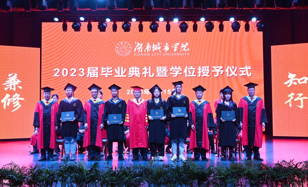 随后,校领导为优秀毕业生拨穗正冠、授予学位证书,并与毕业生合影留念。