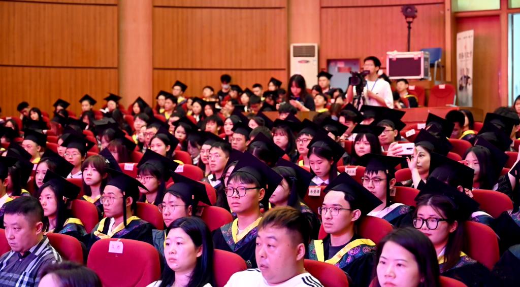 陈列尊宣读了致2023届全体毕业生的“廉洁家书”。自2022年以来,我校每年给广大毕业生送上了一份特殊的礼物——“廉洁家书”,助力毕业生在清廉的人生道路上迈好“第一步”。陈列尊叮嘱青年学子常修清正之德以自重,无论身处何时何地都不能忘记修身立德,坚持向善向美向上的价值追求,努力让自己成为有德行、有品格、有格局的人;常怀干净之心以自律,不管从事什么工作,要遵守行业规范,恪守职业道德,决不触碰“高压线”;常思贪欲之害以自警,时刻紧绷抵制贪欲这根弦,保持自警的清醒,坚守底线,在大是大非和杂念妄想面前,保持冷静和定力。