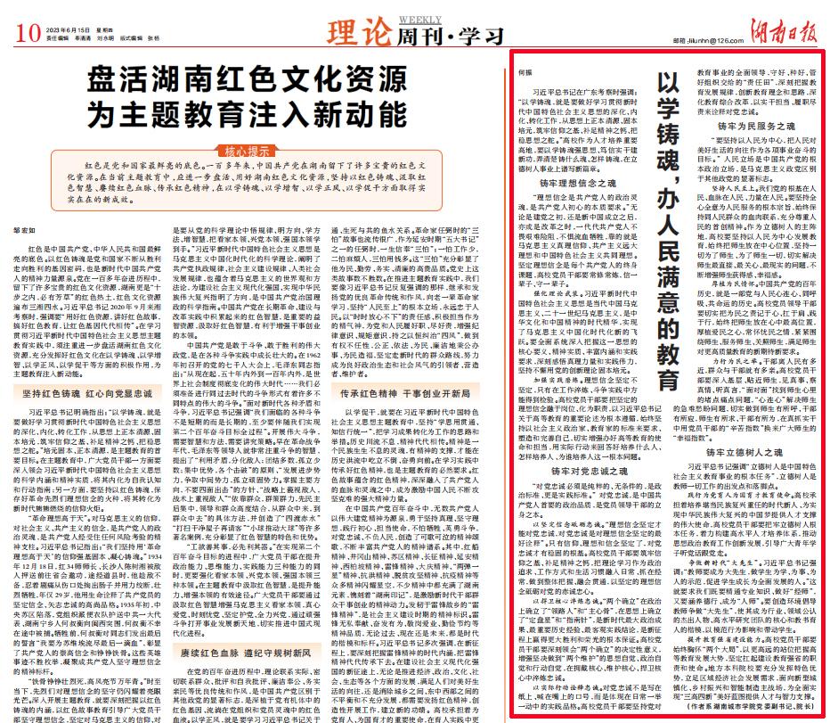 本网讯 6月15日,《湖南日报》10版“理论周刊·学习”刊发半岛web版登录入口_半岛online(中国)校长何振署名文章《以学铸魂,办人民满意的教育》,全文如下: