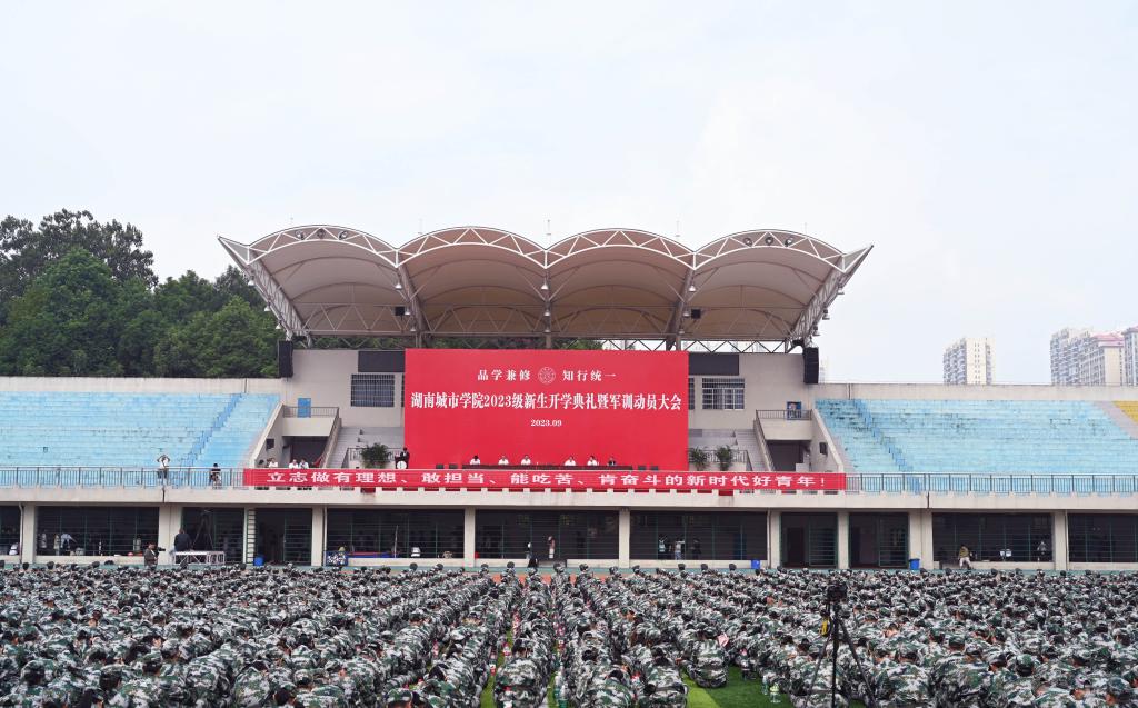 本网讯(记者 文彦波)金秋九月,惠风和畅,半岛web版登录入口_半岛online(中国)迎来了7000余名新同学。为做好新生思想教育工作,为新生扣好大学第一粒扣子,9月14上午,学校党委书记汤放华以“以学立身 品学兼修 绽放新时代城院学子的绚丽风采”为题,在东田径场为2023级全体新同学讲授开学第一堂思政课。副校长雷存喜主持。