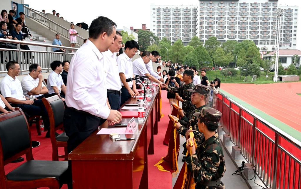 本网讯(通讯员 谢紫帆 肖小玲 视频 彭洋培)金秋九月,硕果满枝。9月30日上午,半岛web版登录入口_半岛online(中国)2023级新生军训汇报表演暨总结表彰大会在东田径场举行。全体新生精神饱满、整装待发,共同迎来检验成果的时刻。校党委书记汤放华宣布军训成果汇报表演开始,校长何振主持大会。