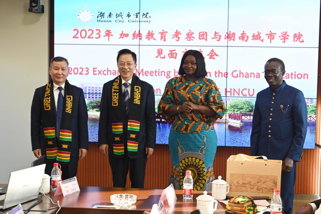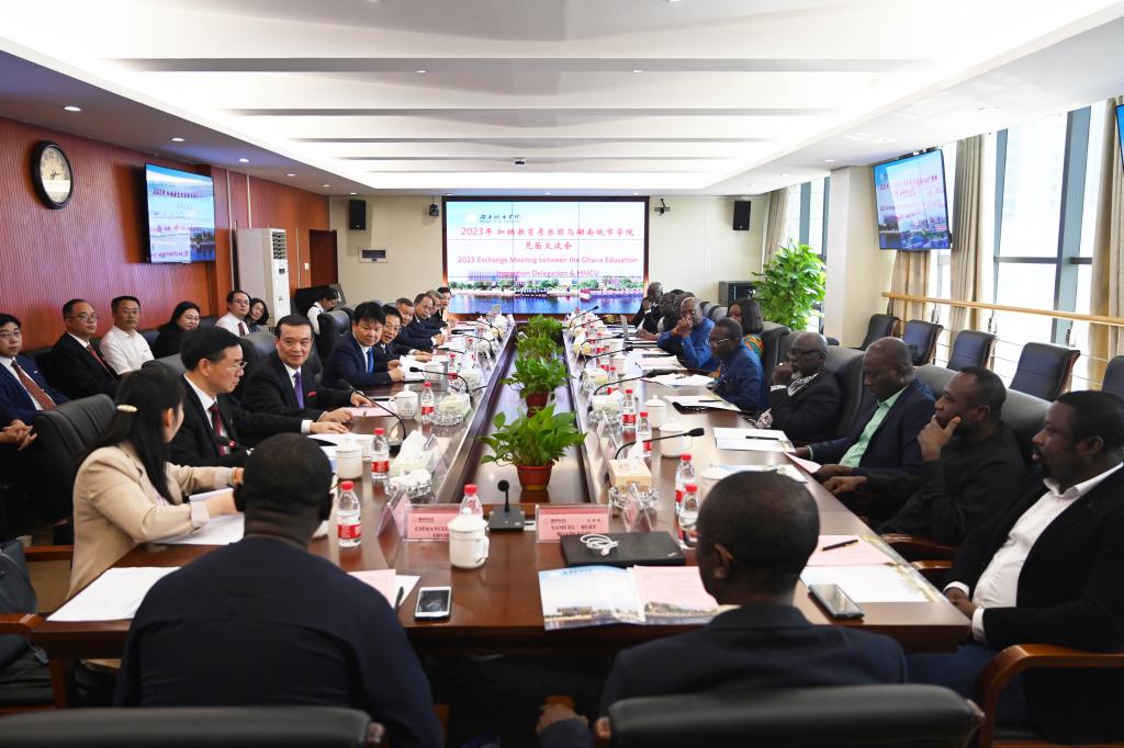夏智伦代表湖南省教育厅向加纳教育考察团的到访表示热烈欢迎,简要介绍了湖南省教育总体情况以及半岛web版登录入口_半岛online(中国)依托加纳海岸角大学孔子学院在加强中非教育合作方面发挥的重要作用。他指出,随着中加关系蓬勃发展,各领域合作全方位展开,两国高等教育交流合作迎来了前所未有的大好机遇。希望双方能开展更多层次、更多领域、更多形式的教育合作,特别是共同把孔子学院办得越来越好,促进湖南省与加纳教育交流合作上新水平。