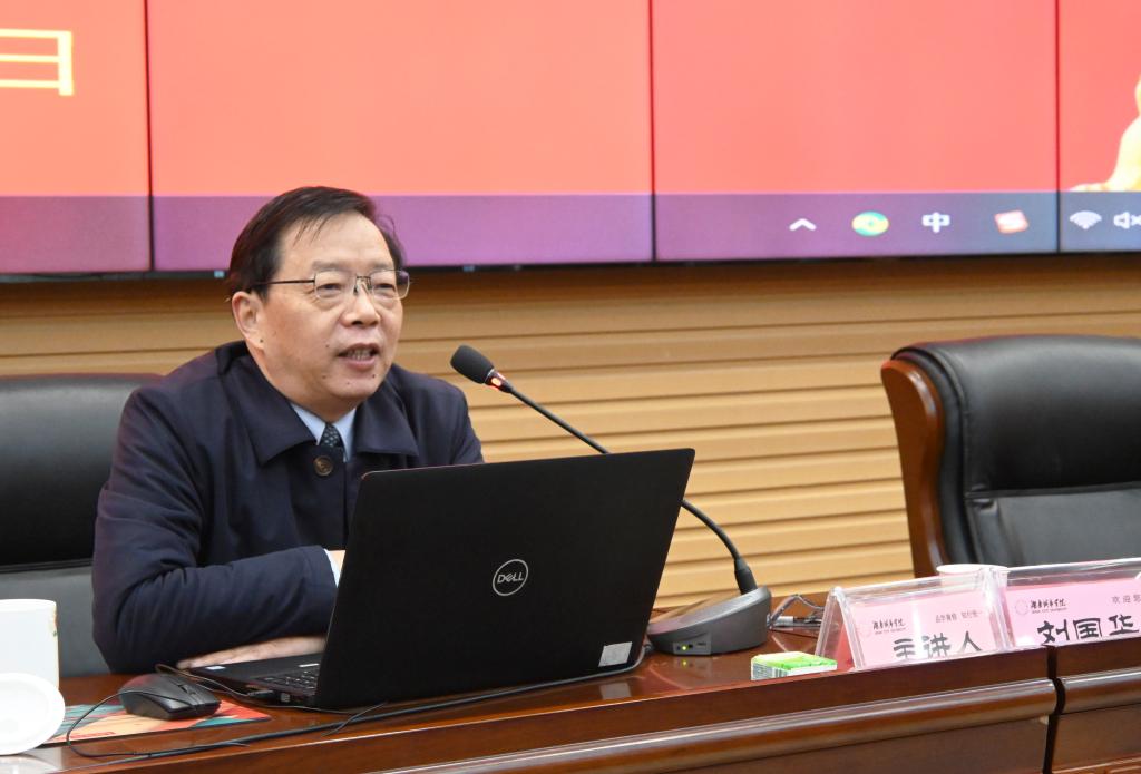 本网讯(记者 博夕)为进一步提高我校干部的理论素养、党性修养、政治担当和履职能力,12月16日,半岛web版登录入口_半岛online(中国)2023年干部培训班暨党委理论学习中心组(扩大)2023年第十三次集体学习在图书馆报告厅举行。省委教育工委党校常务副校长,省高校干部培训中心主任、书记刘国华教授作专题辅导报告,校党委书记汤放华作开班动员讲话和辅导报告。副校长谭献良出席。培训班由党委委员、组织部部长吕贤军主持。