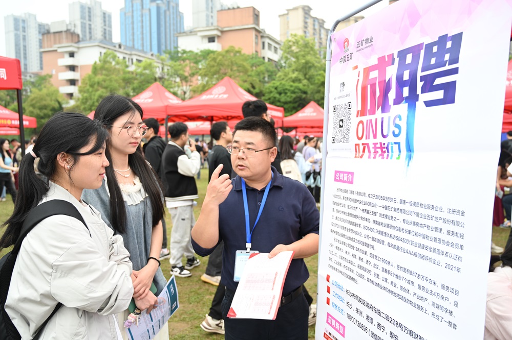汤放华与用人单位亲切交流,详细询问行业发展现状、招聘岗位需求、毕业生职业发展通道、薪资待遇等情况。他勉励大家树立正确的择业观、就业观,以积极的心态投入到求职行动中。汤放华强调,全校上下要积极搭建校园招聘平台,畅通就业服务渠道,持续开展精准就业服务,充分发挥校园招聘主渠道作用,为毕业生更加充分更高质量就业保驾护航。