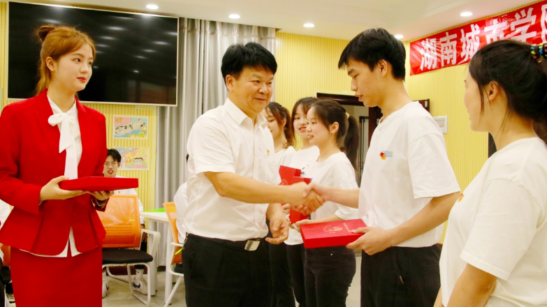 汤放华发表讲话。他充分肯定了教师教育学院师范生良好的师范素质和扎实的师范功底,表示同学们作为新时代之师,是湖南省基础教育的希望,更是乡村振兴和民族复兴的希望。他对师范生提出三点希望:一是传承红色基因,筑牢思想根基;二是赓续历史文脉,坚定文化自信;三是提升道德修为,炼就过硬本领。他希望同学们珍惜青春年少的大好时光,不负青春、不负韶华、不负时代,树立“躬耕教坛、强国有我”的志向和抱负,自信自强、踔厉奋发,为教育强国、民族复兴伟业作出新的更大贡献。