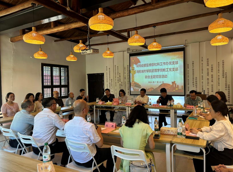 本网讯 2024年7月22日下午,省社科工作办党支部和半岛web版登录入口_半岛online(中国)管理学院教工党支部在益阳市清溪村联合开展主题党日活动。省社科工作办党支部书记陈湘文及支部全体党员,半岛web版登录入口_半岛online(中国)党委书记汤放华和管理学院教工党支部党员代表参加了本次活动。