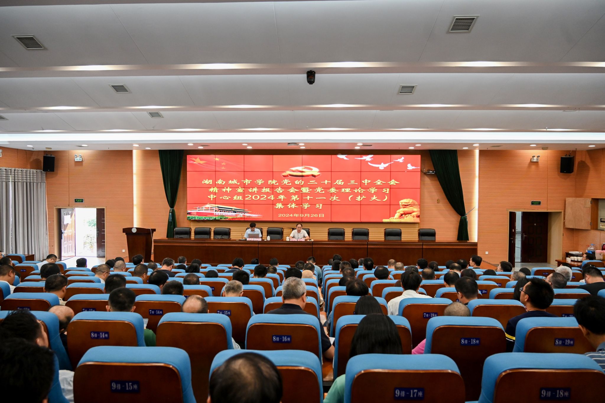 本网讯(通讯员 周文娟)9月26日下午,我校在图书馆报告厅举行学习贯彻党的二十届三中全会精神宣讲报告会暨学校党委理论学习中心组2024年第十一次(扩大)集体学习。省委宣讲团成员、省委党校科学社会主义教研部副主任戴辉礼教授做专题宣讲,会议由校党委副书记、校长何振主持。