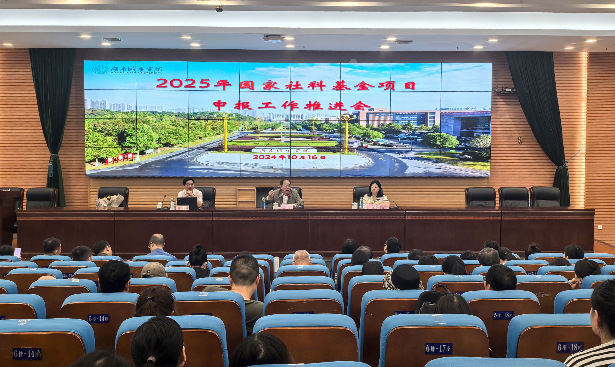 本网讯(通讯员 赵旭)10月16日上午,我校在图书馆报告厅举行2025年国家社科基金项目申报工作推进会,校长何振、副校长徐姝出席。