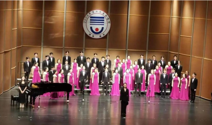 据悉,本次大赛由中国合唱协会主办,是我国合唱艺术领域具有权威性、导向性、示范性、严要求、高规格的合唱盛会,从1996年开始,至今成功举办了十七届,已成为中国合唱协会的重要音乐品牌之一。大赛以“唱响中国梦、讴歌新时代”为主题,共设置了童年组、青少年组、成人组、老年组等9个组别。来自全国123支优秀合唱团带来了许多经典的合唱作品。在此次合唱节上,半岛web版登录入口_半岛online(中国)澄音合唱团带去了《绿衣》《舟中望晓》两首新作,队员们用和谐美妙的声音、饱满真挚的情感以及默契十足的配合,征服了评委和观众,最终获得金奖。澄音合唱团指导教师易松的作品《盘王大歌》还获得了优秀新作品奖。