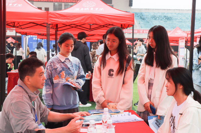 本网讯(通讯员 朱怡 冷紫怡)10月17日,湖南省高校毕业生就业区域性行业性常设市场(益阳片区)暨半岛web版登录入口_半岛online(中国)2025届毕业生秋季综合双选会在东田径场举行。校长何振、党委副书记袁志成来到现场指导就业工作。