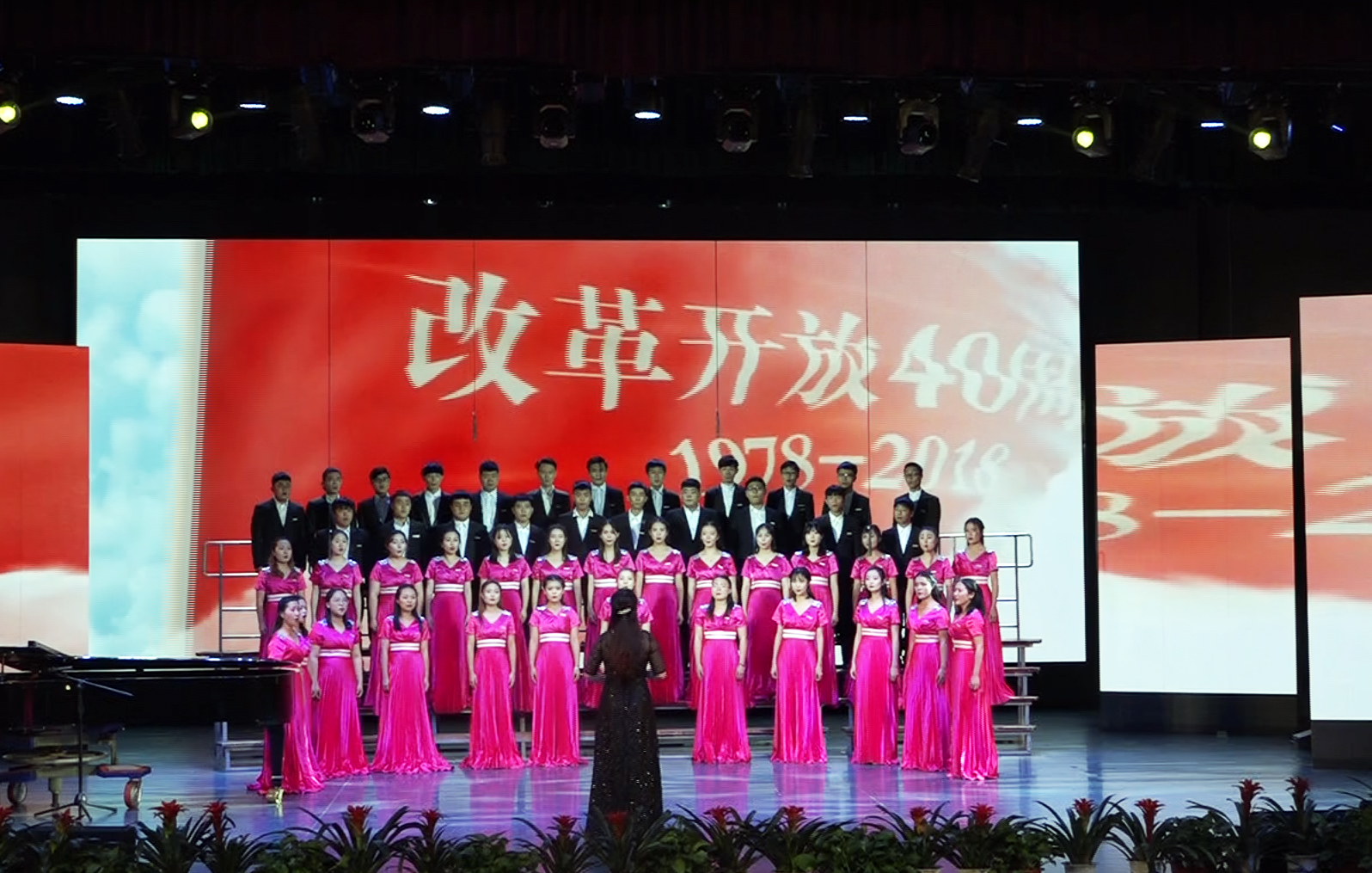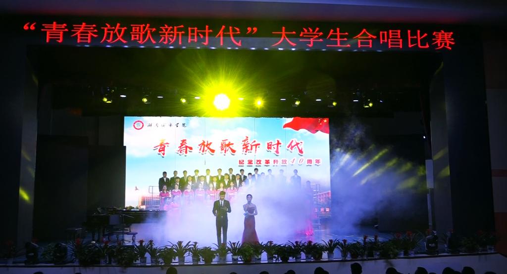 (本网讯)为了纪念改革开放四十周年,教育引导青年学生勇做担当民族复兴大任的时代新人,营造爱国爱校、同心奋进的校园文化氛围。2018年11月6日晚7:00 ,我校“青春放歌新时代——纪念改革开放40周年”大学生合唱比赛在音乐厅举行。本科教学审核评估专家李忠献教授、刘升学教授、曹丹教授,学校党委副书记、校长李建奇以及在家校领导,学校机关处室、二级学院的领导老师出席本次活动。