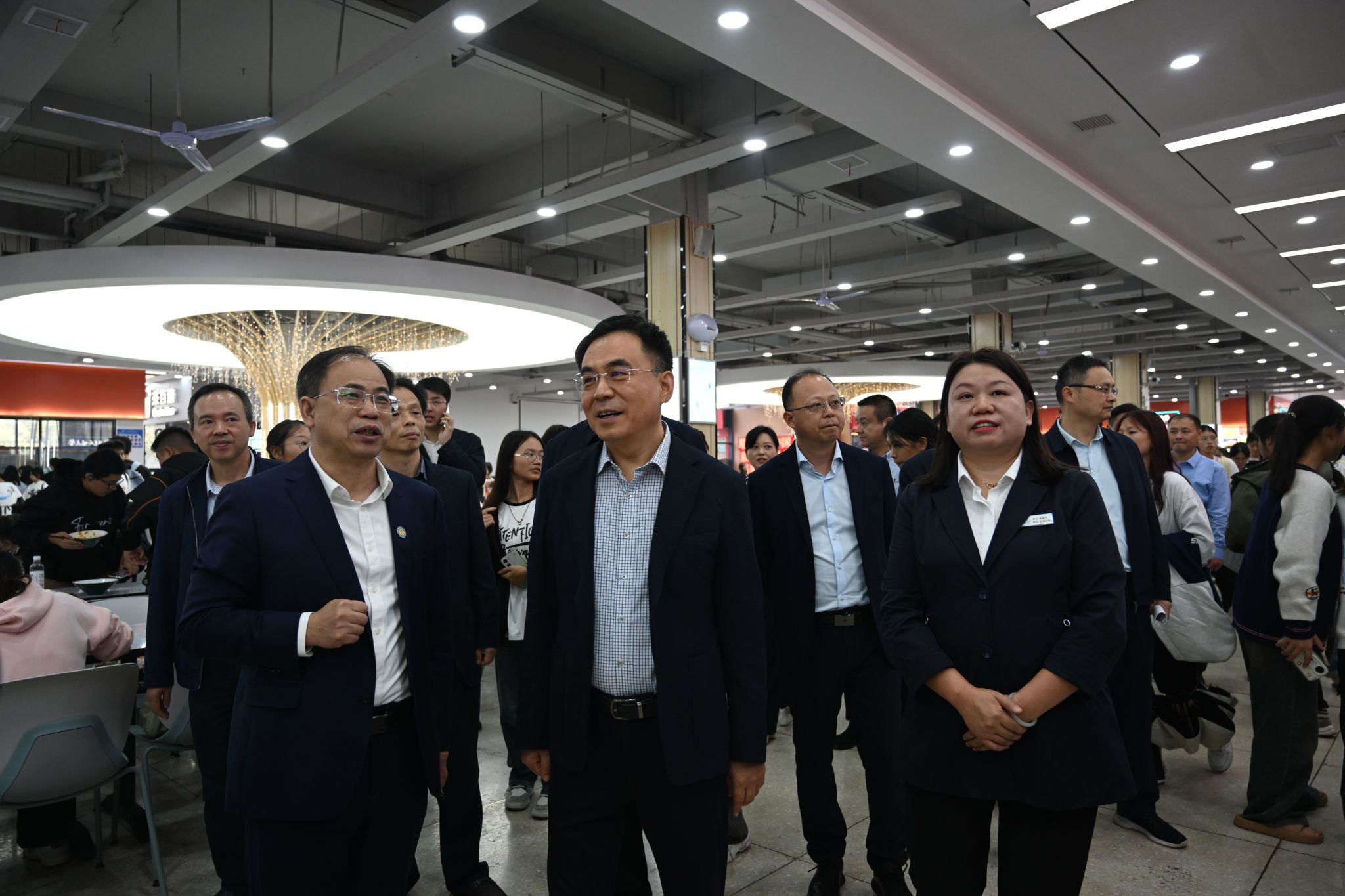王俊寿一行先后到奥士康科技股份有限公司、长安益阳发电有限公司、湖南艾华集团、华翔翔能科技股份有限公司等企业现场督导重点项目建设、工业经济运行、政策兑现落实等情况,随后前往我校检查食品安全。在第二餐饮中心,王俊寿陪同学生共用午餐,现场体验餐食口味、质量,并与就餐的学生亲切交谈,认真听取他们对食堂饭菜的意见建议。王俊寿要求学校严格规范食品安全全过程管理,坚决保障在校师生饮食安全。