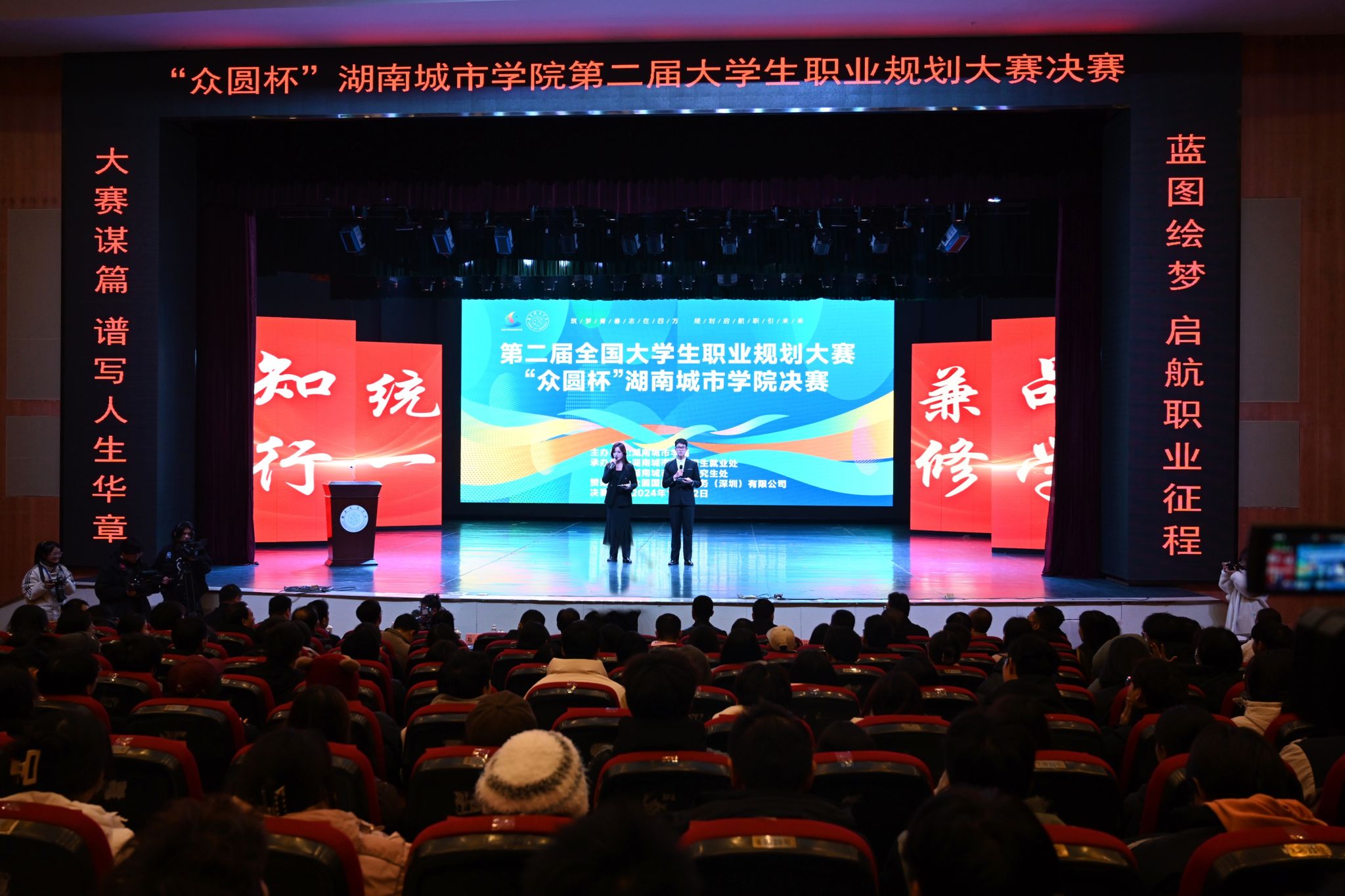 本网讯 (通讯员 张人丹 李宇帆)为深入贯彻落实党中央、国务院决策部署,加强大学生生涯教育和就业指导,增强大学生职业规划意识,12月12日下午,“众圆杯”半岛web版登录入口_半岛online(中国)第二届大学生职业规划大赛决赛在音乐厅举行。校长何振、副校长孙倩出席决赛。