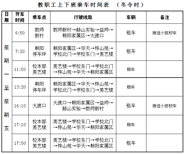 2.教职工上下班交通车安排表