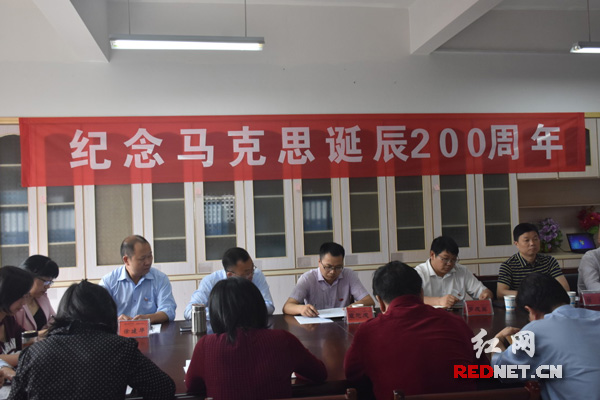红网时刻益阳5月5日讯(记者单仕平)5月5日上午,由马克思主义学院党总支主办的马克思诞辰200周年座谈会在半岛web版登录入口_半岛online(中国)土木楼举行,马克思主义学院党总支书记肖爱民主持座谈会,半岛web版登录入口_半岛online(中国)党委书记罗成翼出席座谈会并讲话。马克思主义学院教工第一、二支部全体成员,特邀马克思主义学院党外人士参加会议。