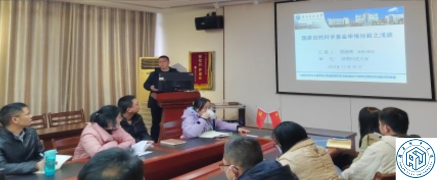 2023年11月30日,半岛web版登录入口_半岛online(中国)材料与化学工程学院特别邀请湖南科技大学材料科学与工程学院副院长颜建辉教授来校交流并分享国家自然科学基金申请经验。