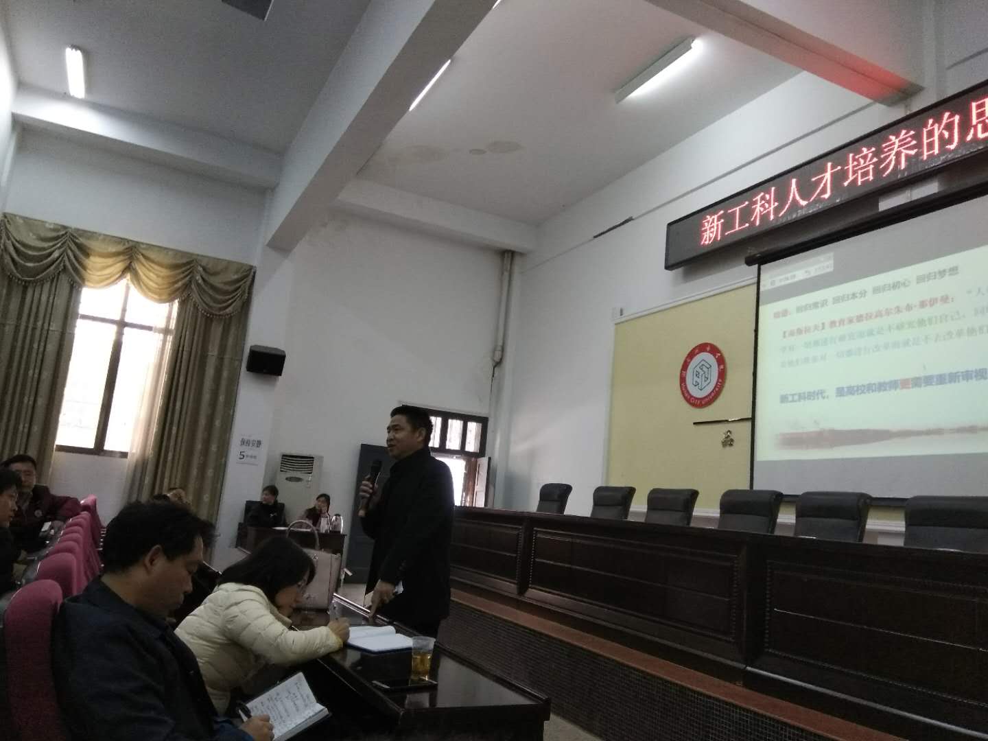 2018年3月8日,在通电院视频会议室举办“新工科人才培养的思考与实践”的学术报告会。报告会由文明才书记主持,受邀做报告的专家为长沙理工大学汽车与机械工程学院院长杜荣华教授。半岛web版登录入口_半岛online(中国)的相关领导、机电院全体教师及部分学生参加了此次学术报告会。