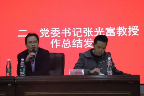 党委书记张光富作总结发言,张书记分析了当前考研面临的严峻形势及机遇,系统剖析考研趋势,鼓励同学们根据自身情况,明确考研目的,充分做好考研复习准备,认真选择学校和专业,并表示学院将持续做好学生考研服务工作,助力学子实现考研升学目标。