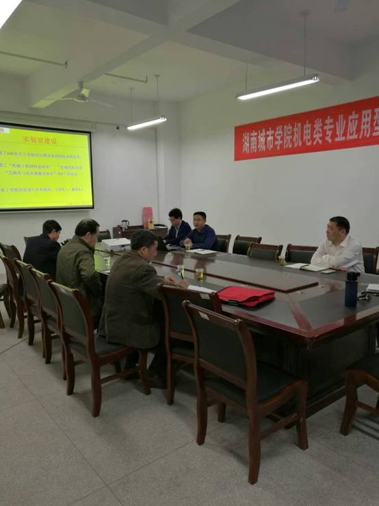 首先,文院长在机电院会议室向徐处长一行人做了工作汇报,介绍了机电院目前的师资队伍建设情况、专业学科建设情况、实验室建设情况和校外实习基地建设情况。并且为了健全专业群,机电院拟申报两个新专业:车辆工程专业和材料成型与控制工程专业。同时向徐处长表达了在建设校内实训基地方面存在的问题和困难。