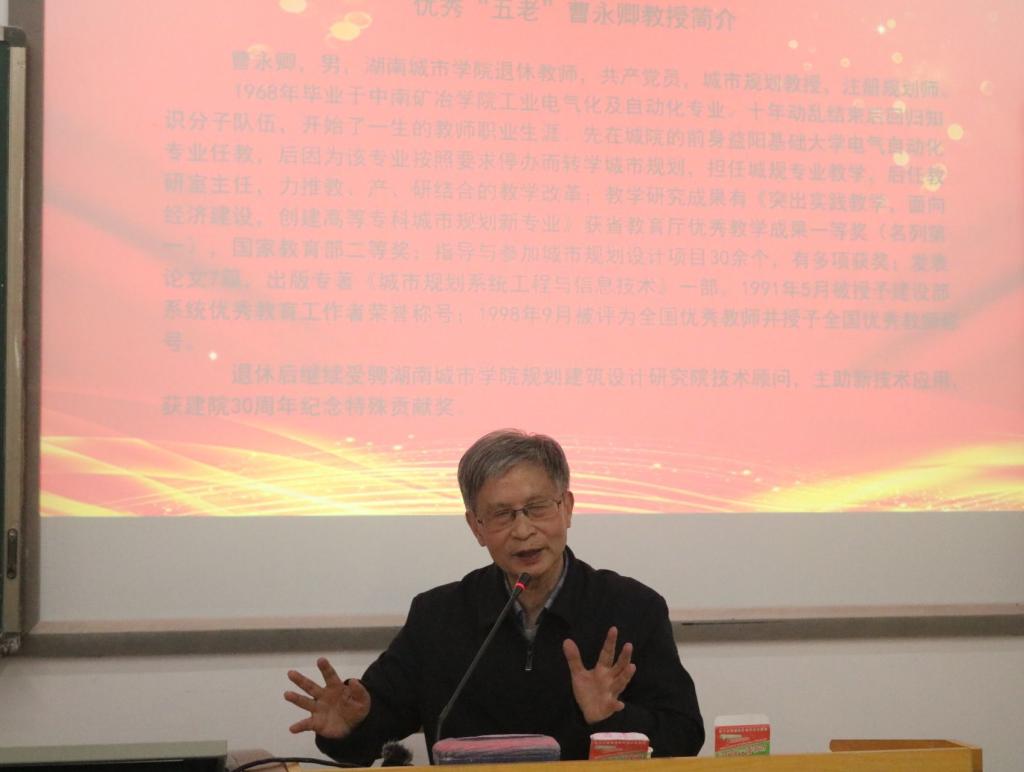 曹永卿,城市规划教授,注册规划师。1991年5月被授予建设部系统优秀教育工作者荣誉称号;1998年9月被评为全国优秀教师并授予全国优秀教师称号。退休后继续受骋半岛web版登录入口_半岛online(中国)规划建筑设计研究院技术顾问,主助新技术应用,获建院30周年纪念特殊贡献奖。曹永卿教授以“不忘初心,砥砺前行-我的教书育人”为题分享了个人成长奋斗的经历,勉励青年学生脚踏实地,努力奋斗,实现人生价值。