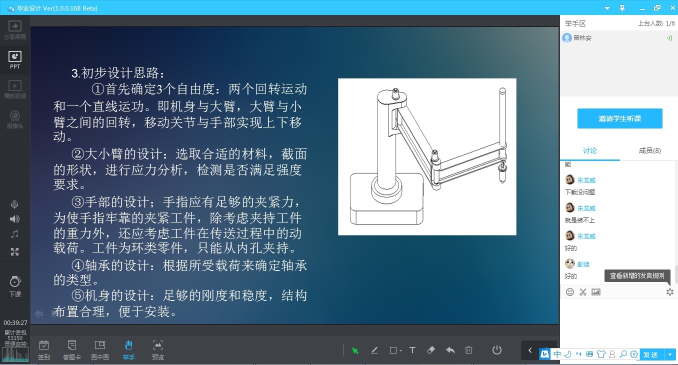 此次毕设在线开题答辩取得了很好的效果。一方面,通过答辩学生对于毕业设计(论文)课题有了更为深入的了解,听取了答辩组老师在特殊疫情条件下的建议,及早做出后续工作的安排和调整,有助于毕业设计(论文)质量提高和顺利完成;另一方面,锻炼了教师的线上教学与指导能力,为下一阶段教学改革的深入进行以及毕设指导工作积累了宝贵经验。