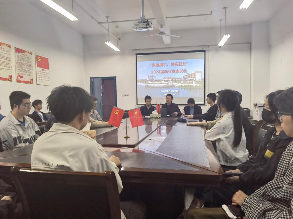 本次会议采取线上与线上相结合的形式,出席本次会议的有机械与电气工程学院党委书记张光富、院长阳同光、副书记易志明、系室中心主任、就业专干、