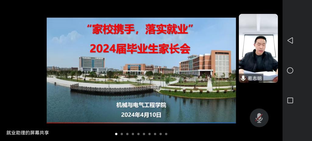 2024届毕业生家长和部分暂未就业学生代表,本次会议由学院党委副书记易志明主持